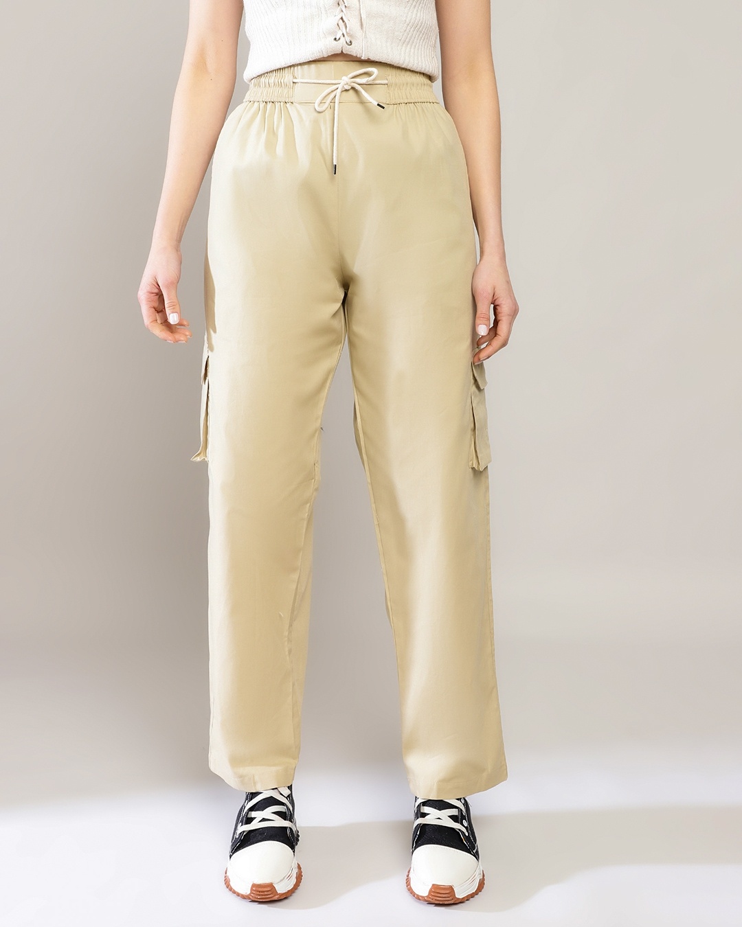 Women's Sand Beige Baggy Cargo Pants