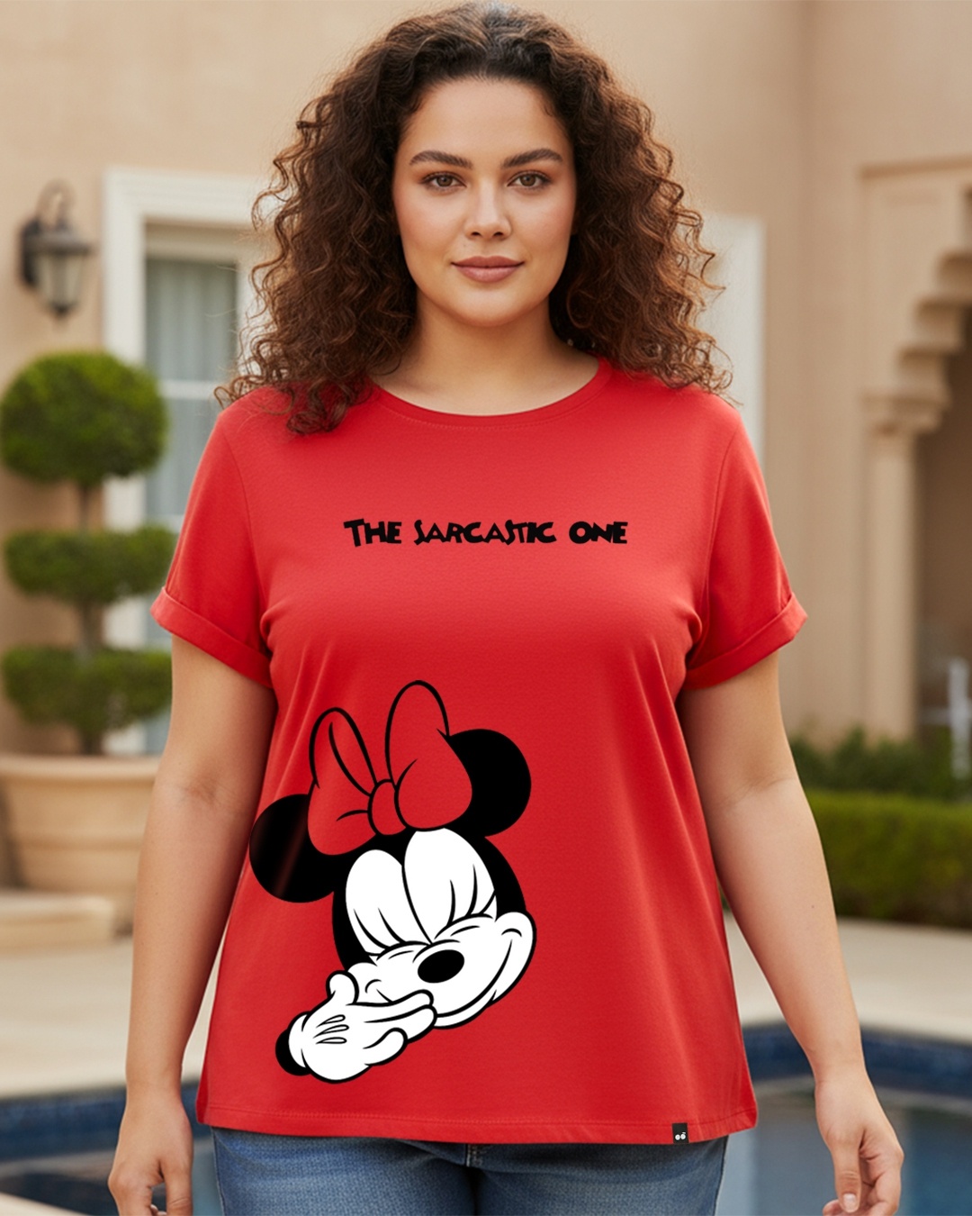Women's Red Sarcastic one Graphic Printed Plus Size Boyfriend T-shirt