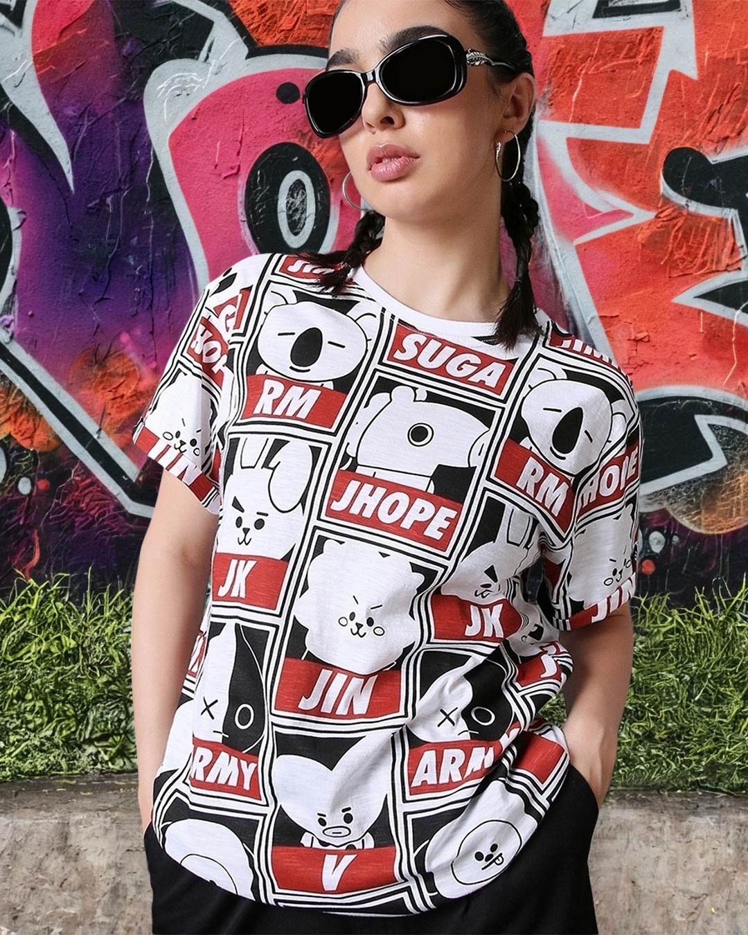 Women's White All Over Printed Plus Size Boyfriend T-shirt
