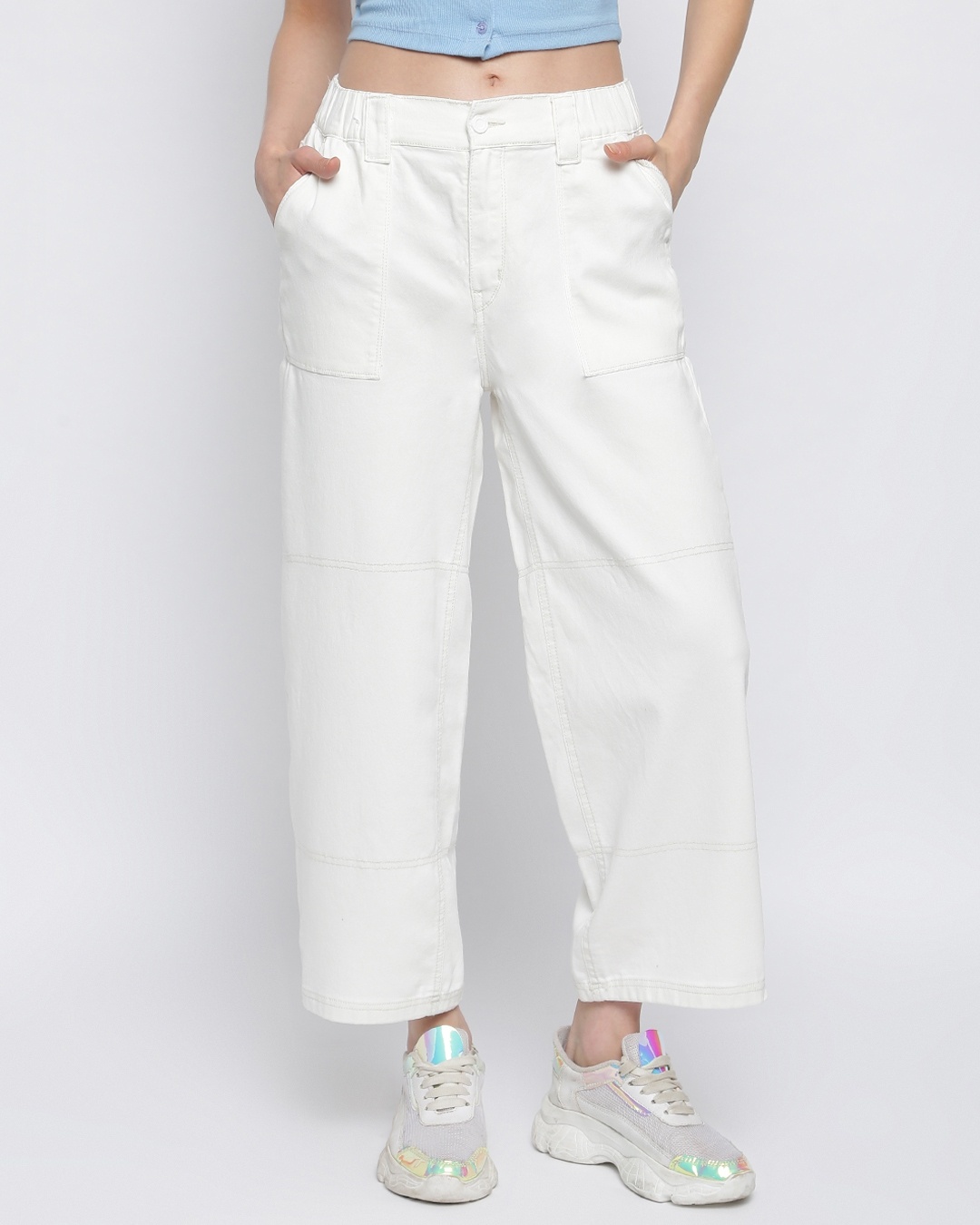 Women's White Baggy Relaxed Fit Jeans
