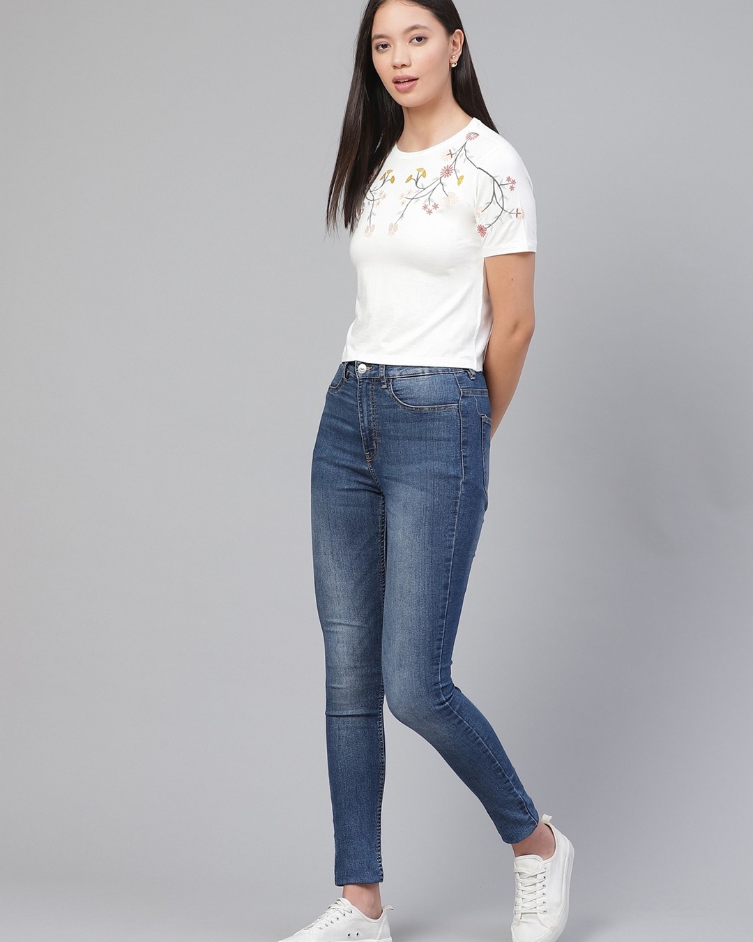 Women's White Floral Embroidered Top