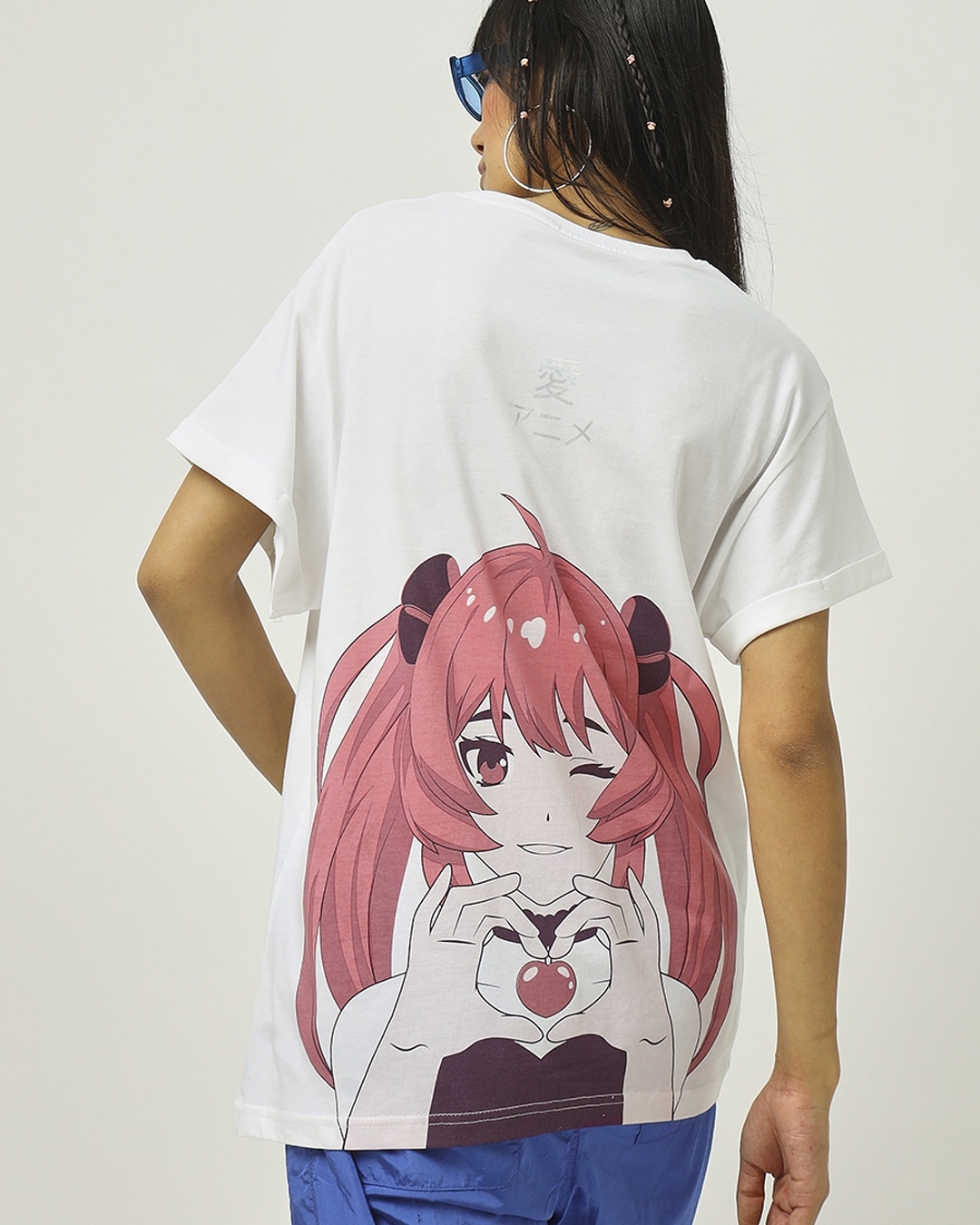 Women's White Promo Graphic Printed Boyfriend T-shirt