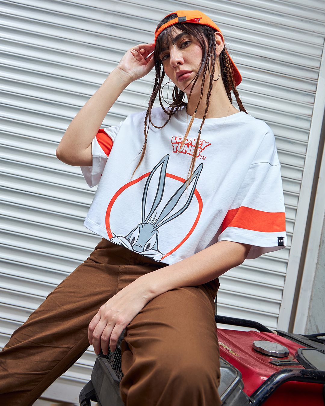 Women's Blue Round in Bugs Graphic Printed Oversized Short Top