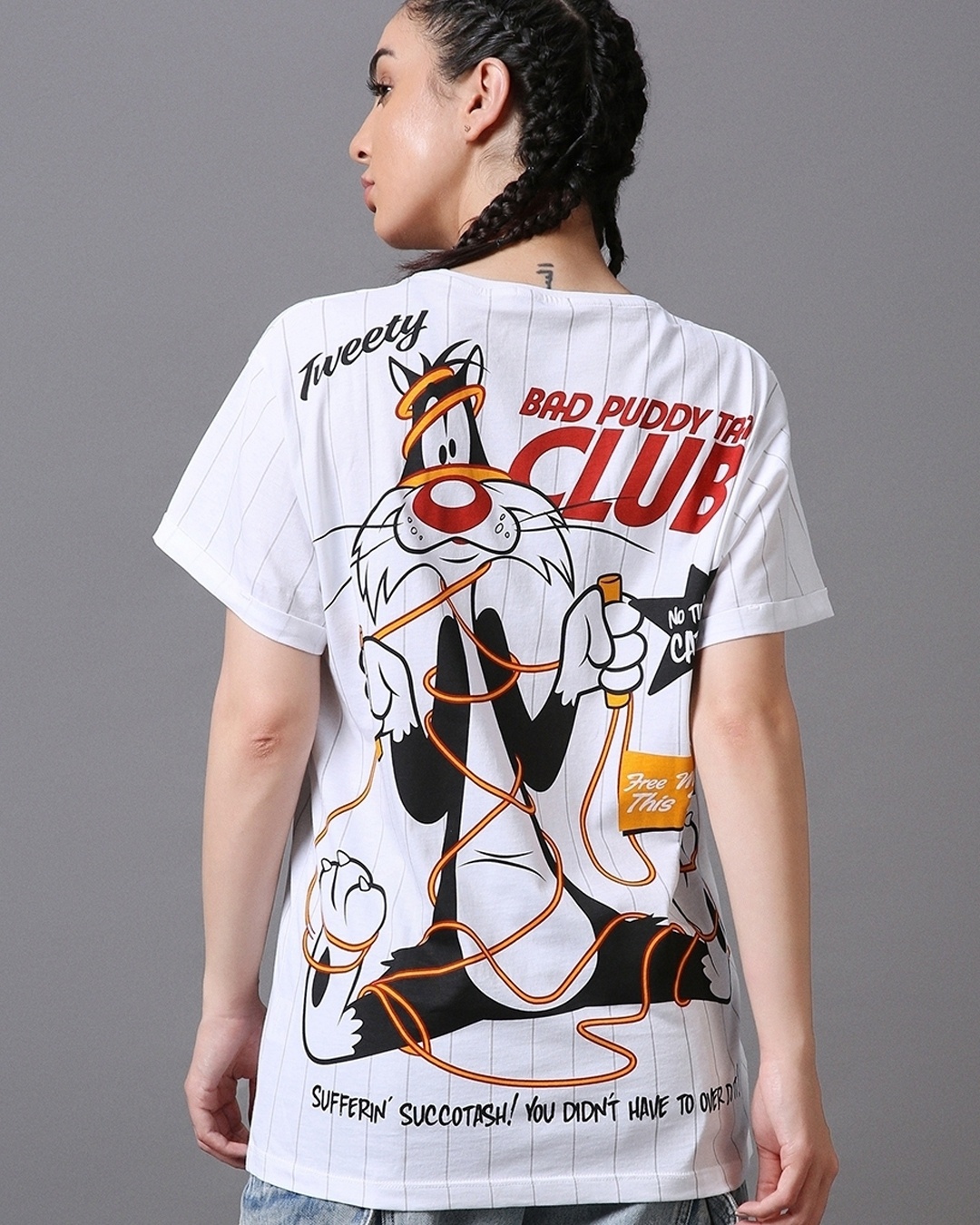 Women's White TW Club Graphic Printed Boyfriend T-shirt