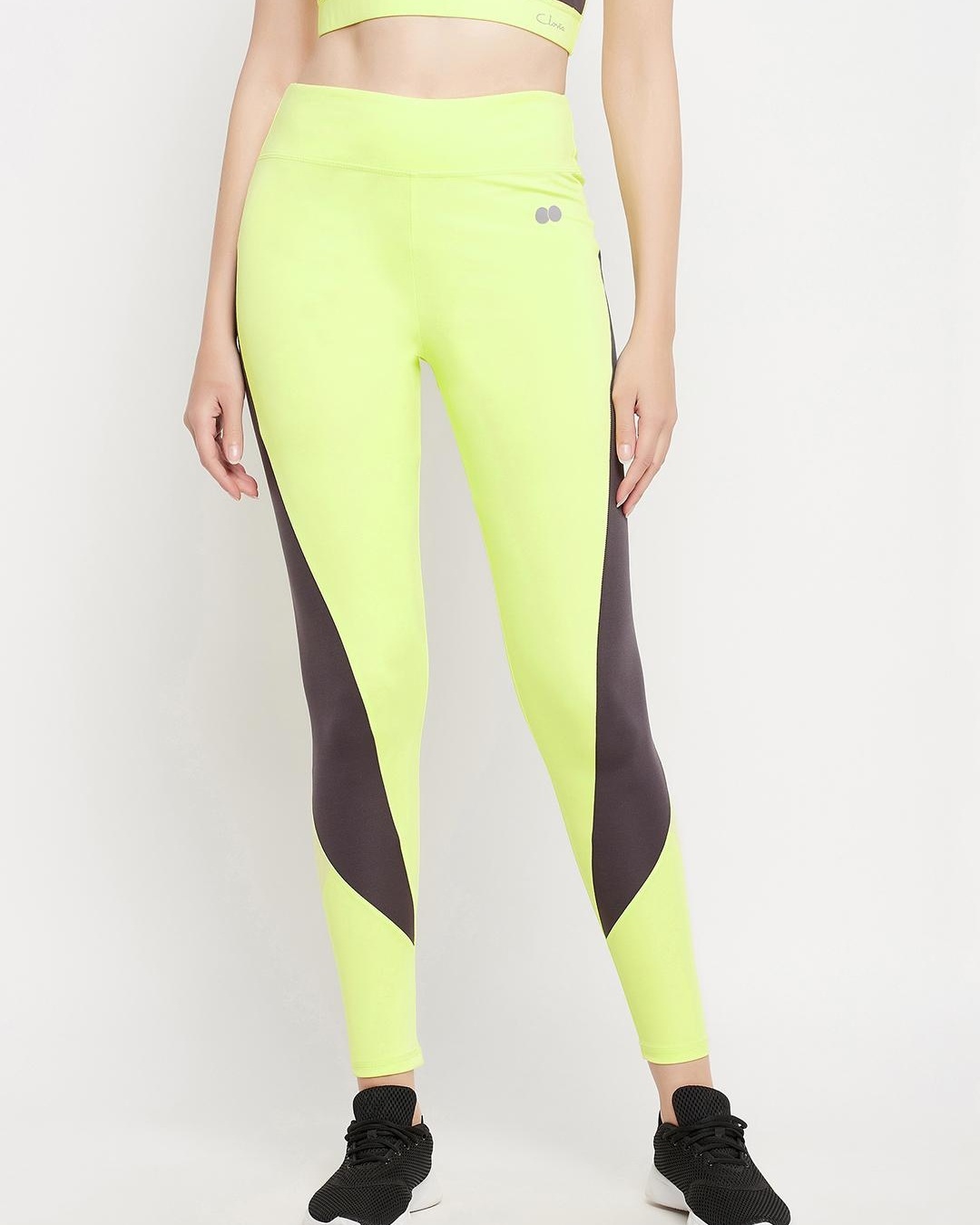 Women's Yellow Color Block Slim Fit Activewear Tights