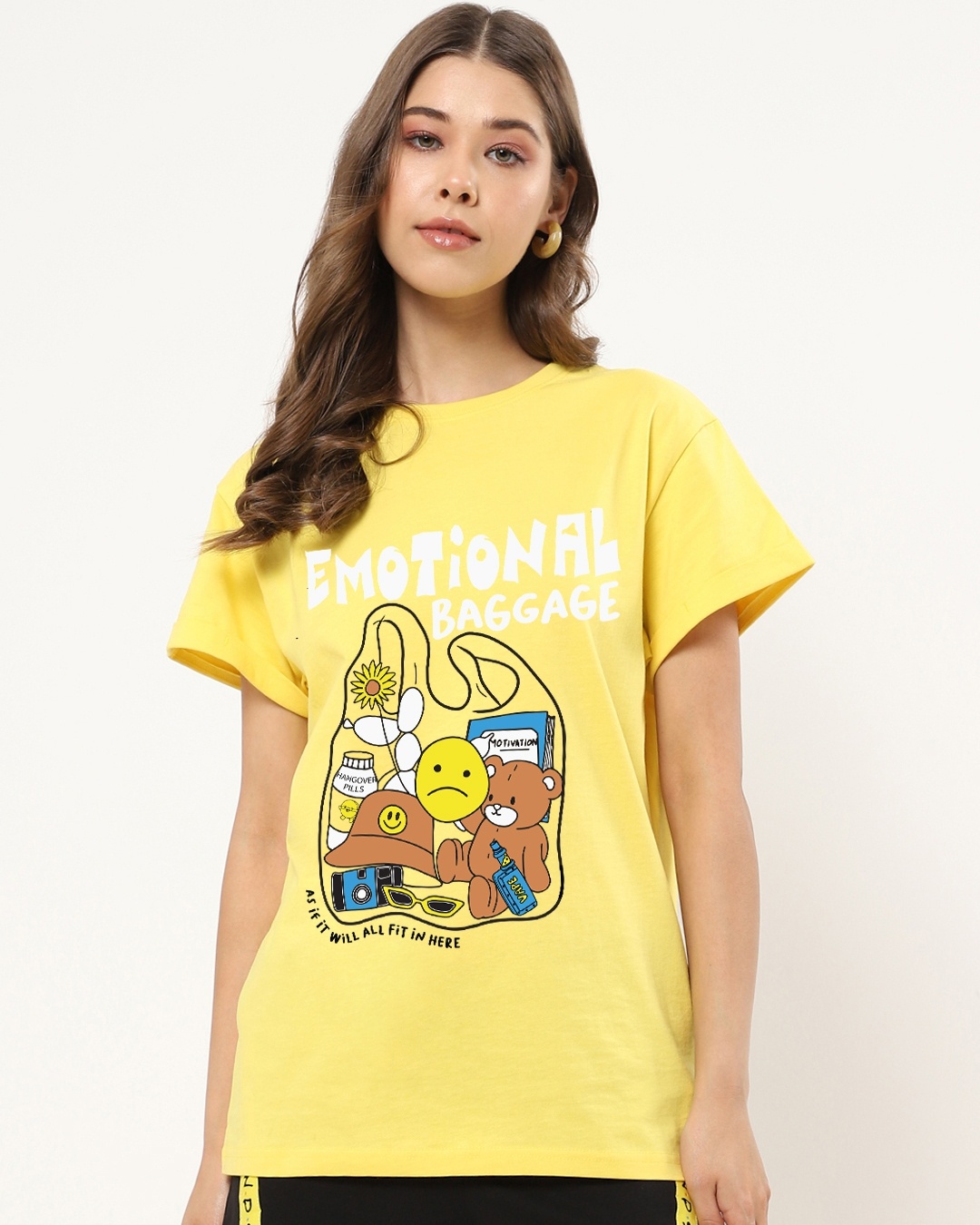 Women's Yellow Emotional Baggage Graphic Printed Boyfriend T-shirt