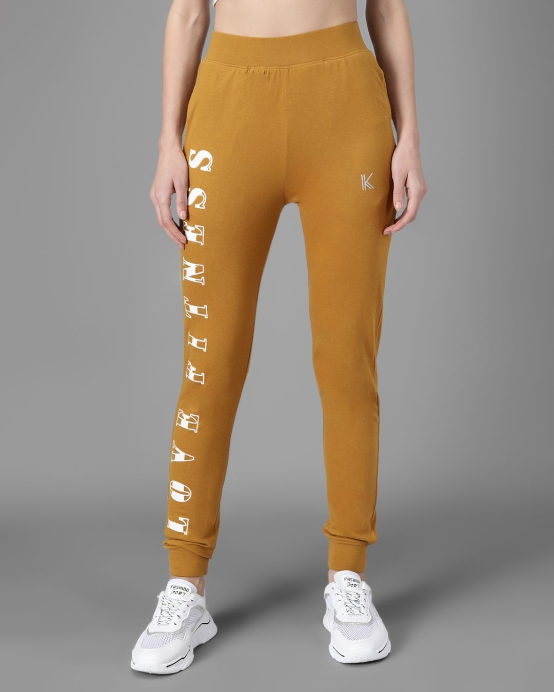 Women's Yellow Love Fitness Typography Skinny Fit Joggers
