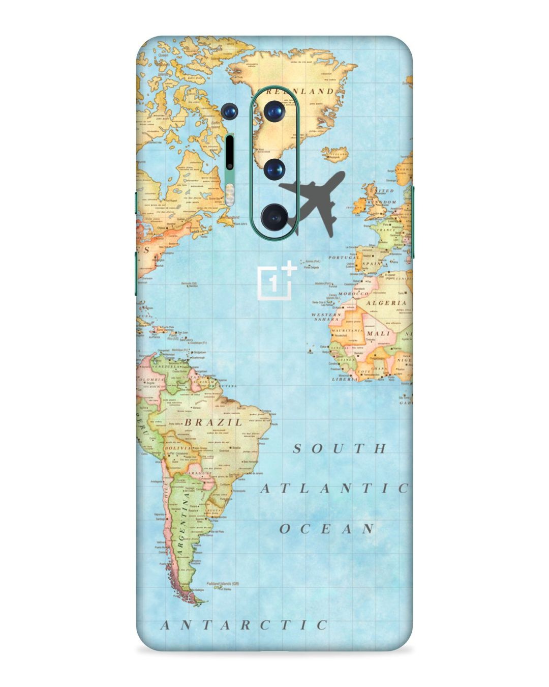 Blue World Map Printed Mobile Skin for OnePlus 8 Pro
