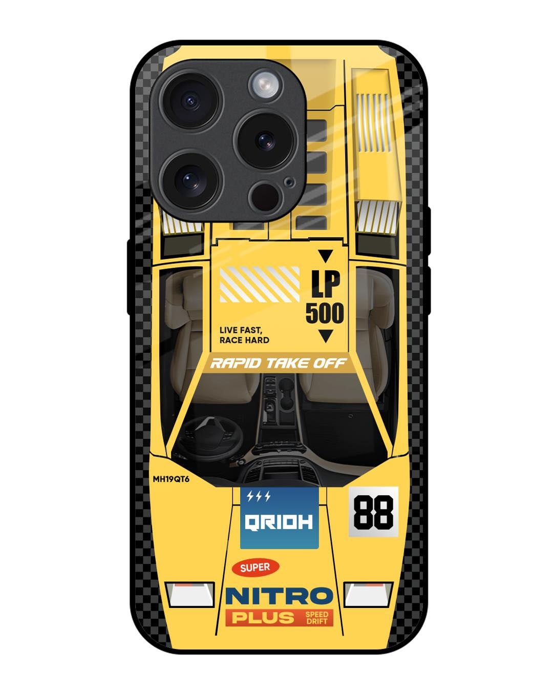 Yellow Racing Car Premium Glass Cover for Apple iPhone 15 Pro(Shock Proof, Scratch Resistant)