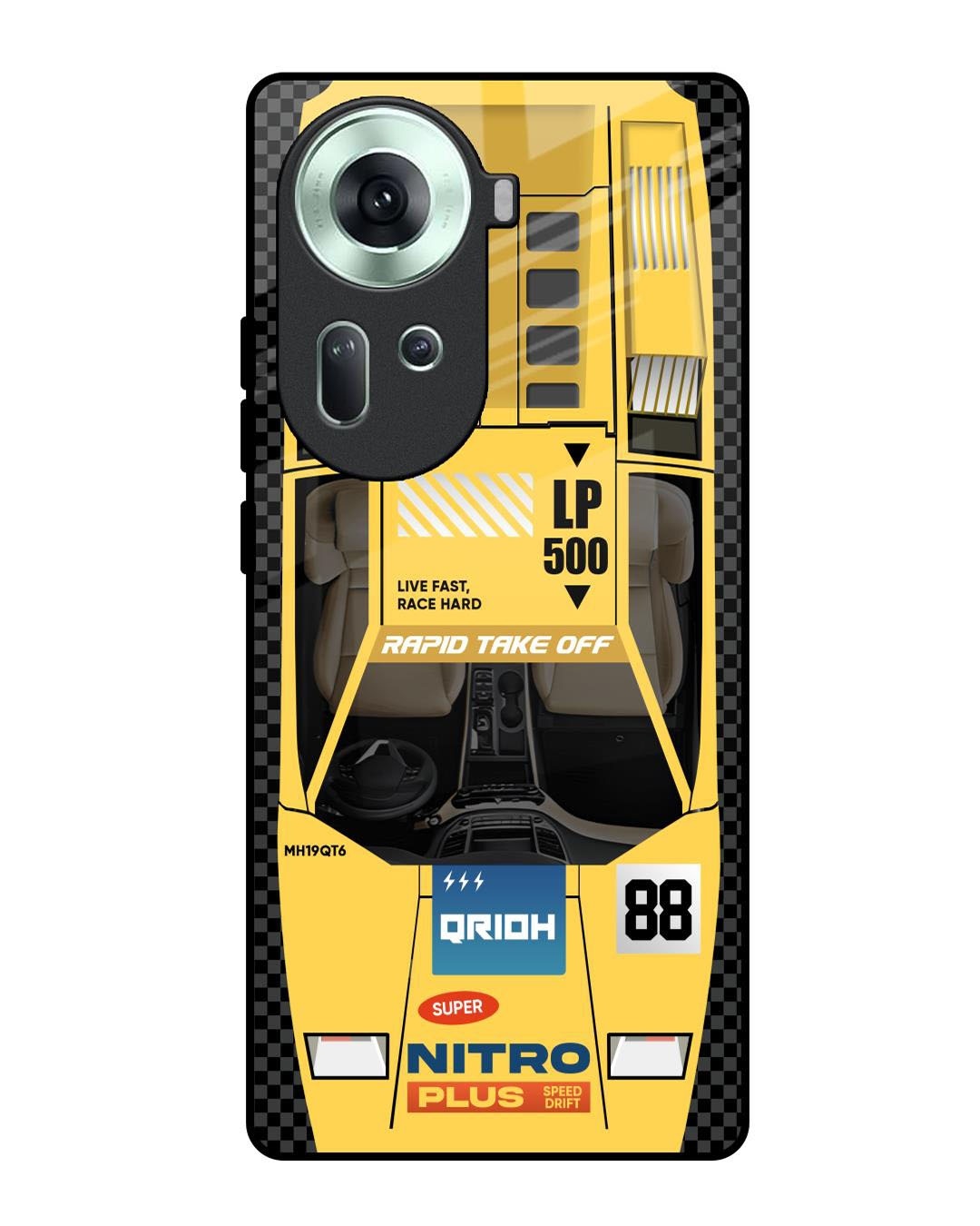 Yellow Racing Car Premium Glass Cover for Oppo Reno11 5G(Shock Proof, Scratch Resistant)