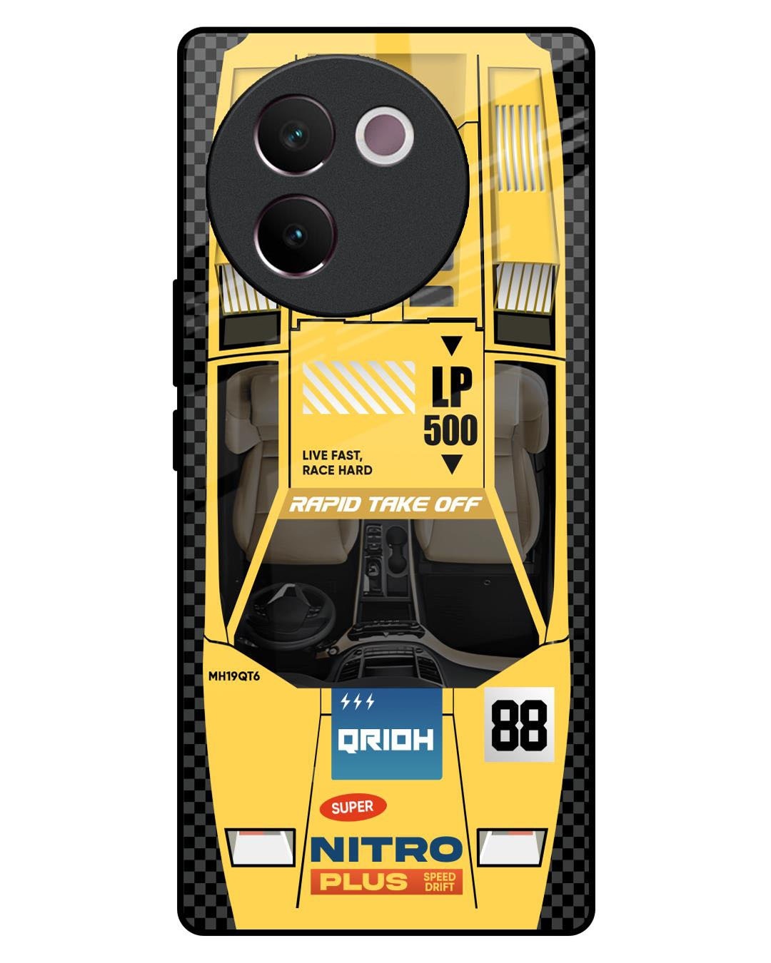 Yellow Racing Car Premium Glass Cover for Vivo V30e(Shock Proof, Scratch Resistant)