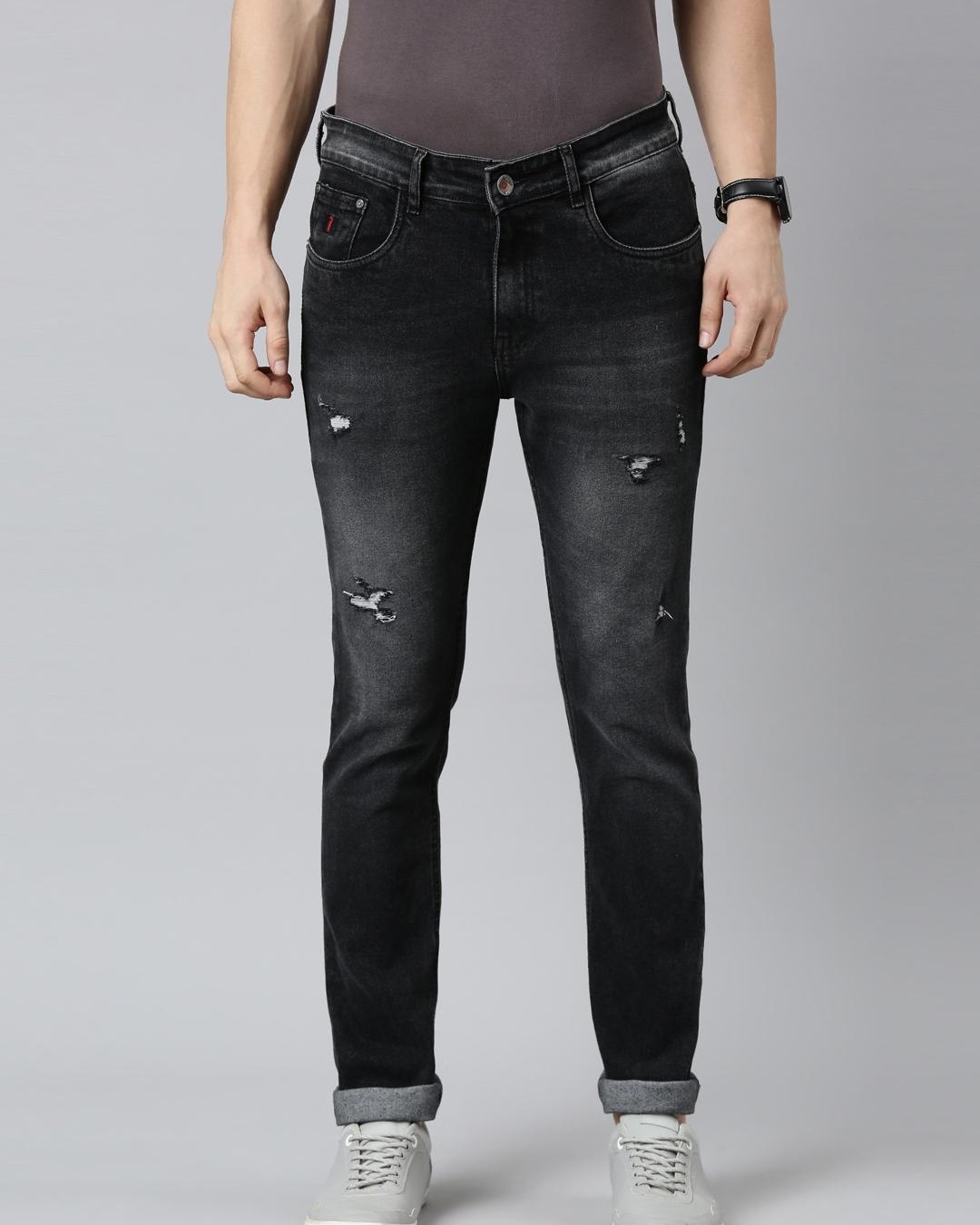 Men's Black Distressed Slim Fit Jeans