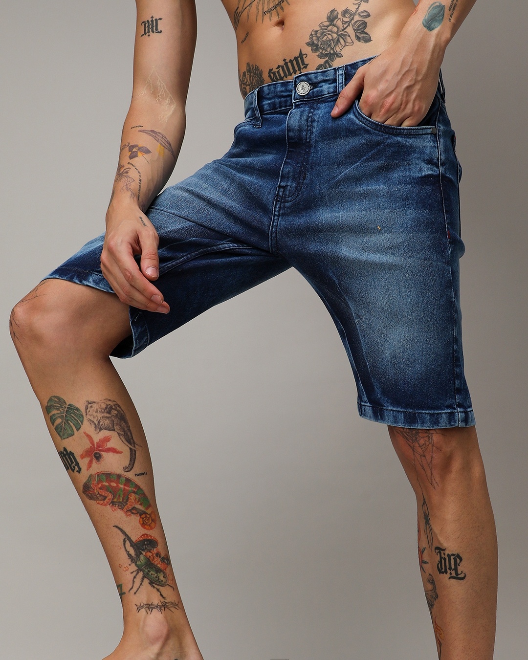 Men's Blue Washed Denim Shorts