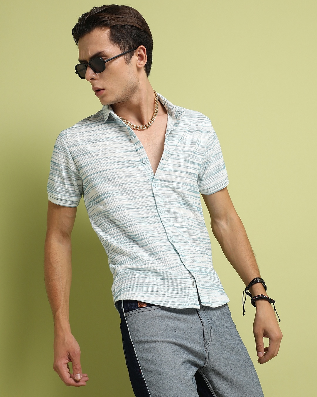 Men's Blue & White Horizontal Striped Shirt