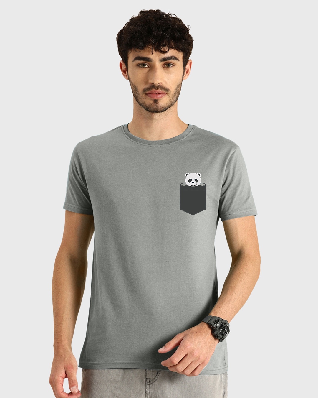 Men's Grey Pocket Panda Graphic Printed T-shirt