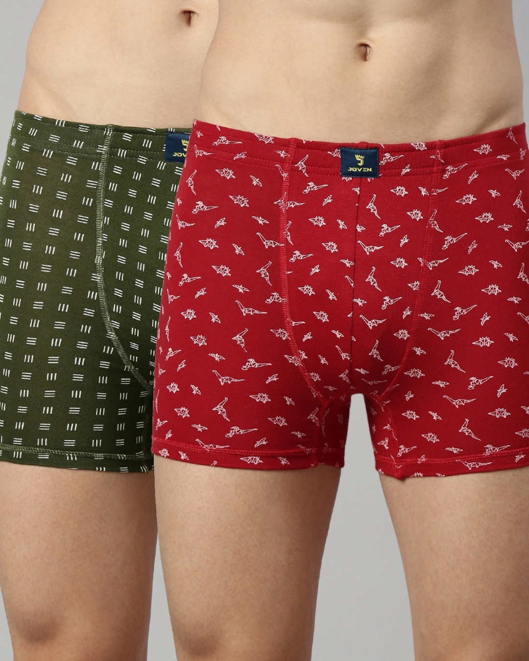 Pack of 2 Men's Red & Green All Over Printed Slim Fit Boxers